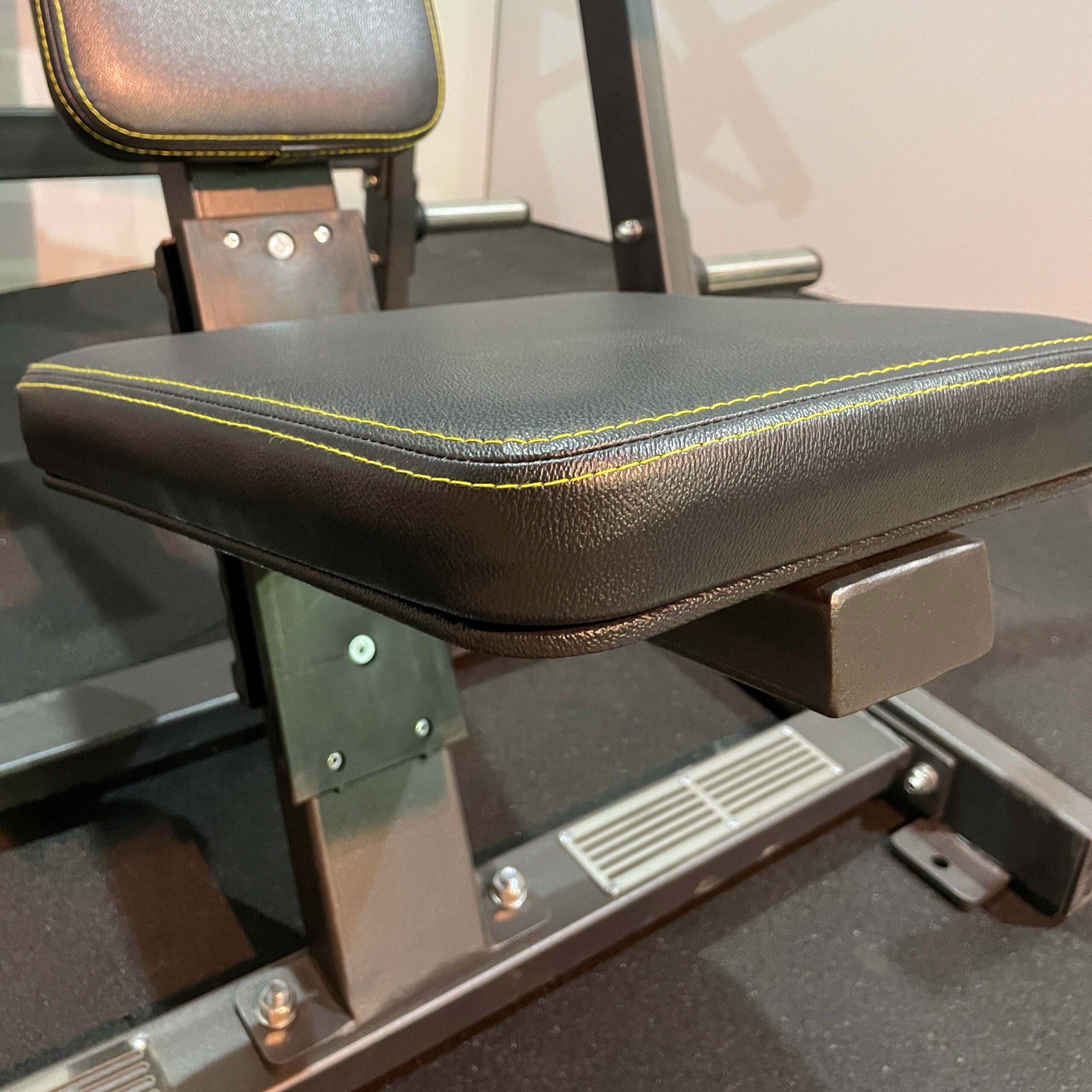 Тренажер имеет четыре опорные ножки из стального листа толщиной 5 мм с прорезями для надежного крепления к полу и резиновыми накладками для устойчивого положение и безопасности спортсмена.