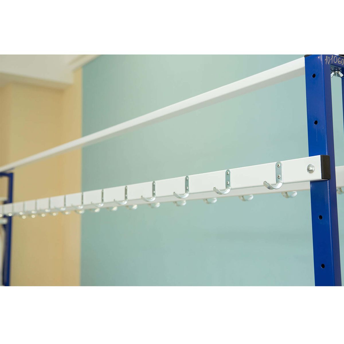 Стойка изготовлена из профильной трубы 50×25×1,5 мм. Покрытие выполнено методом порошковой окраски. В стойках изделия предусмотрены отверстия для регулировки высоты перекладин.