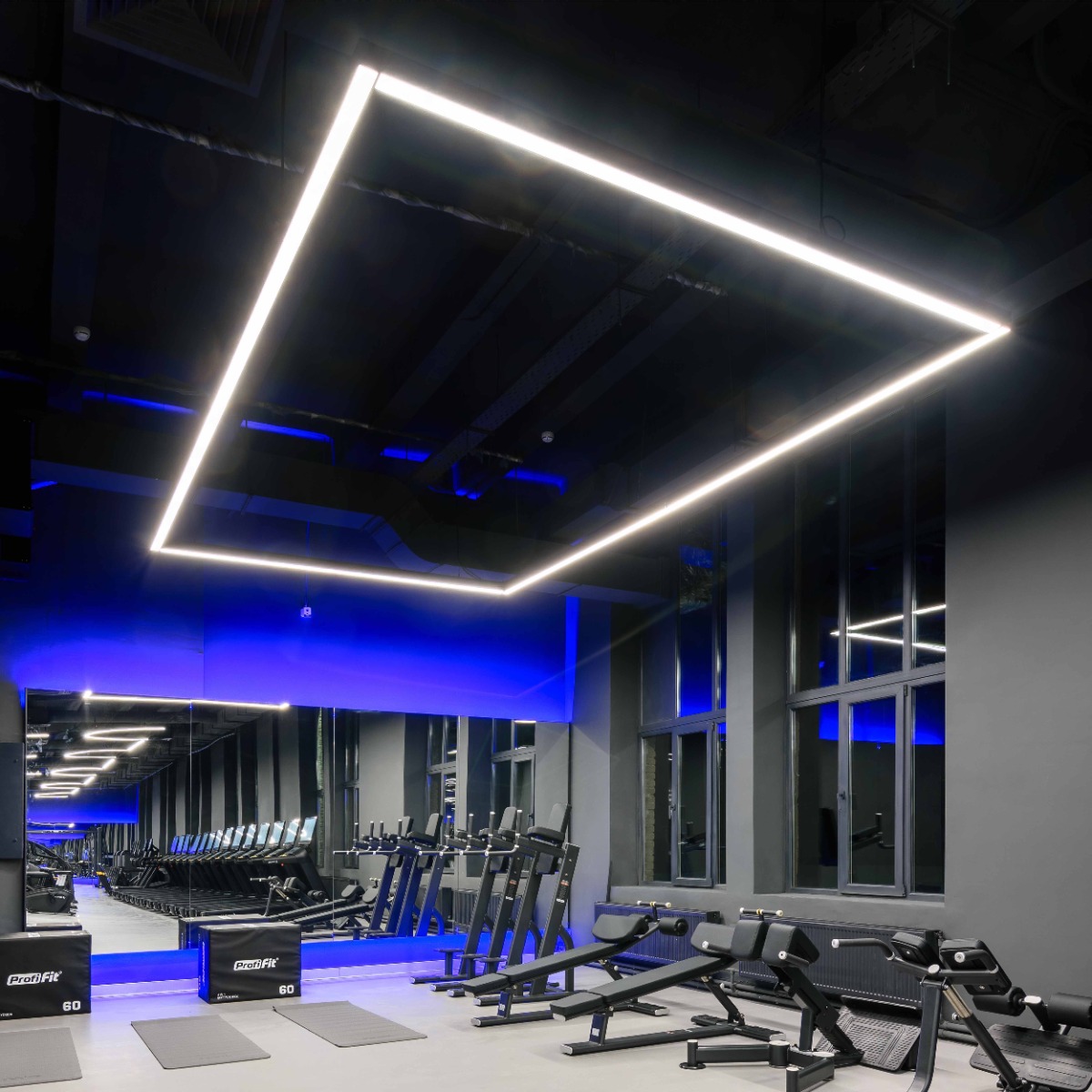 Светодиодный светильник линейного типа, длиной три метра, предназначен для общего и акцентного освещения в спортивных и коммерческих интерьерах. Подходит для одиночной установки или в составе светового комплекса.