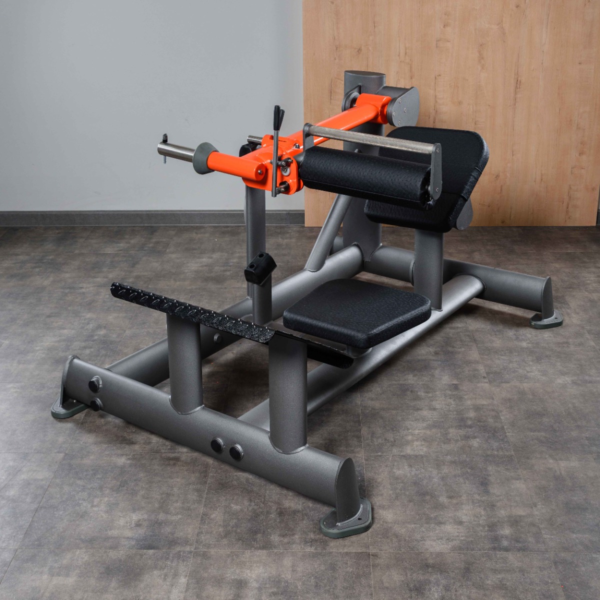 Платформа для ног выполнена из рифлёного стального листа толщиной 4 мм, исключающего соскальзывание во время выполнения упражнения. Платформа установлена под углом для естественного положения стоп при разгибании таза, не регулируется.