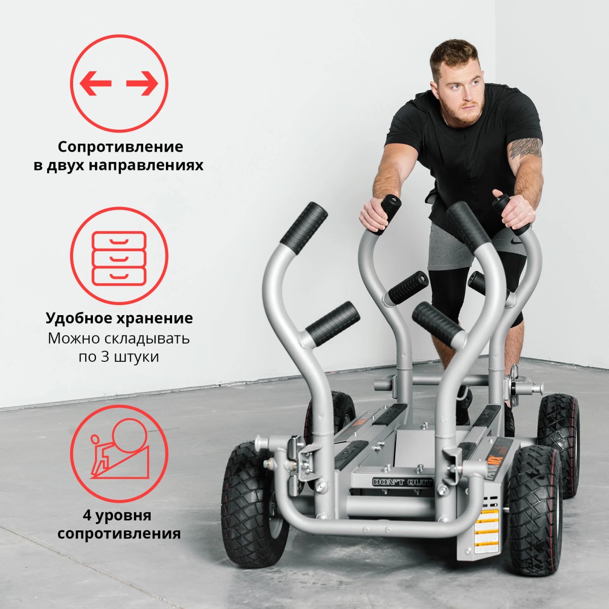 TANK™ — это уникальный тренажер для развития взрывной силы и HIIT-тренировок. В отличие от стандартных тренировочных саней TANK использует не вес дисков, а магнитное сопротивление. Спортсмену не нужно тратить время на изменение нагрузки. Шины тренажера позволяют использовать его на любой поверхности, не опасаясь шума или повреждений. Тренироваться с TANK можно как и на улице. Сопротивление подается в обоих направлениях: поворачивать тренажер не нужно, что уменьшает необходимую для тренировок площадь.Область применения: профессиональная;Уровни сопротивления: 4;Размеры товара в сборе: 141 х 85 х 95 см;Гарантия 10 лет на раму и сварные швы.