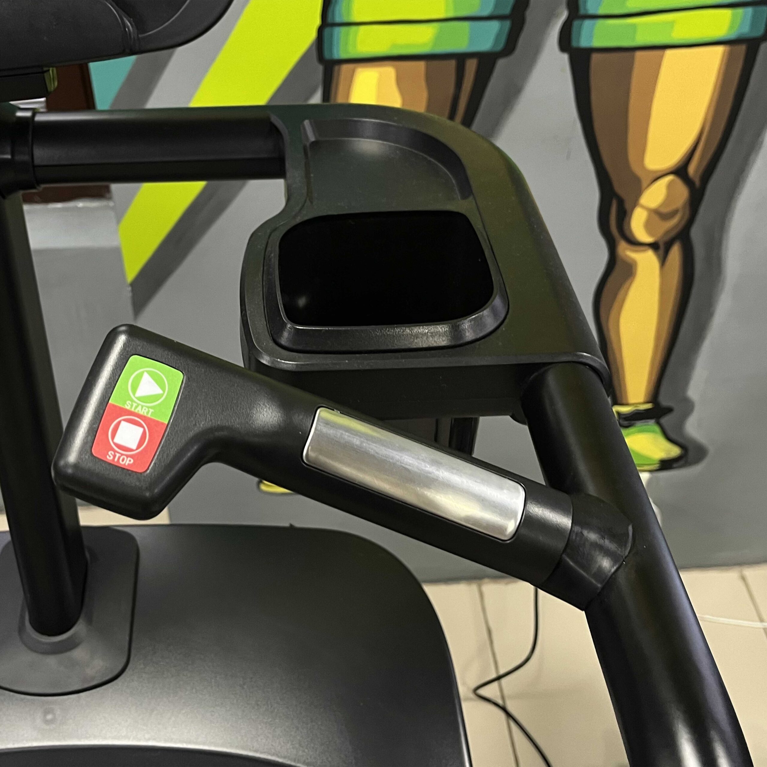Буквенно-цифровой информационный светодиодный LED-дисплей отображает: время тренировки в диапазоне от 00:00 до 99:59 секунд, пройденное расстояние, израсходованные калории в диапазоне от 0 до 999 калорий, скорость, интенсивность, частоту сердечных сокращений в диапазоне от 40 до 180 ударов в минуту.