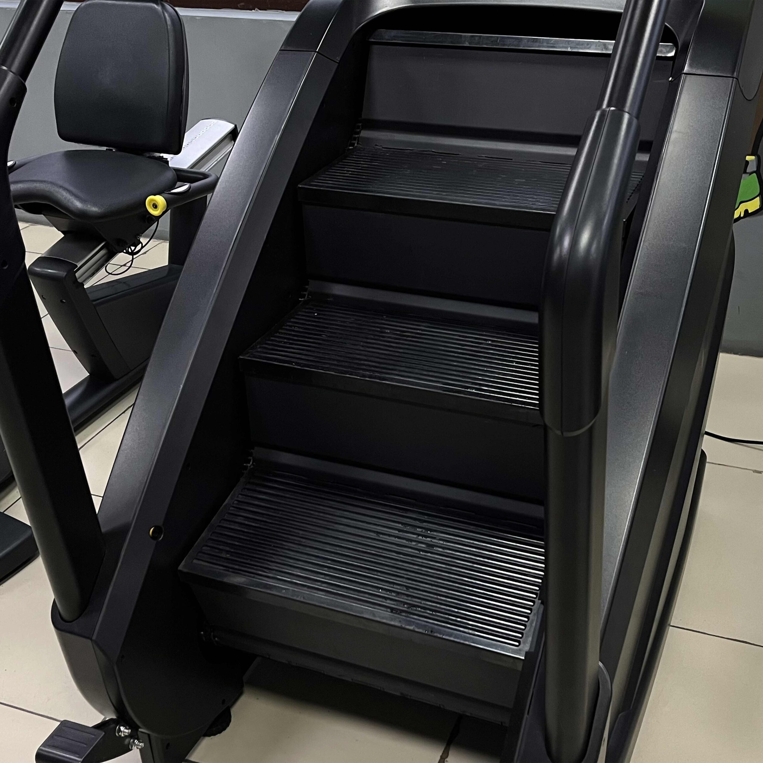 Одна пара ступеней с рифленой поверхностью у основания тренажера даёт возможность легко занять исходное положение, завершить подход или сделать перерыв во время тренировки.