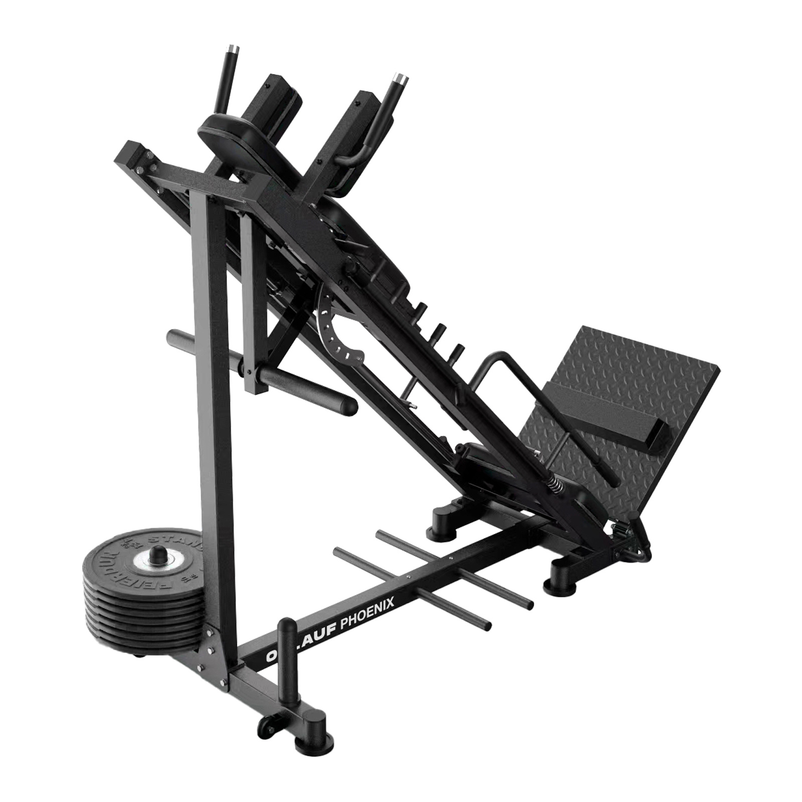 Силовой тренажер Orlauf Phoenix 2-в-1 «Жим ногами + Гакк-машина» — это универсальная станция для качественной проработки низа тела. Его ключевое преимущество — трансформационная система Kratwell™, позволяющая за 4 простых шага превратить его из тренажера для жима ногами в гакк-машину и обратно, что дает два профессиональных тренажера в одном.