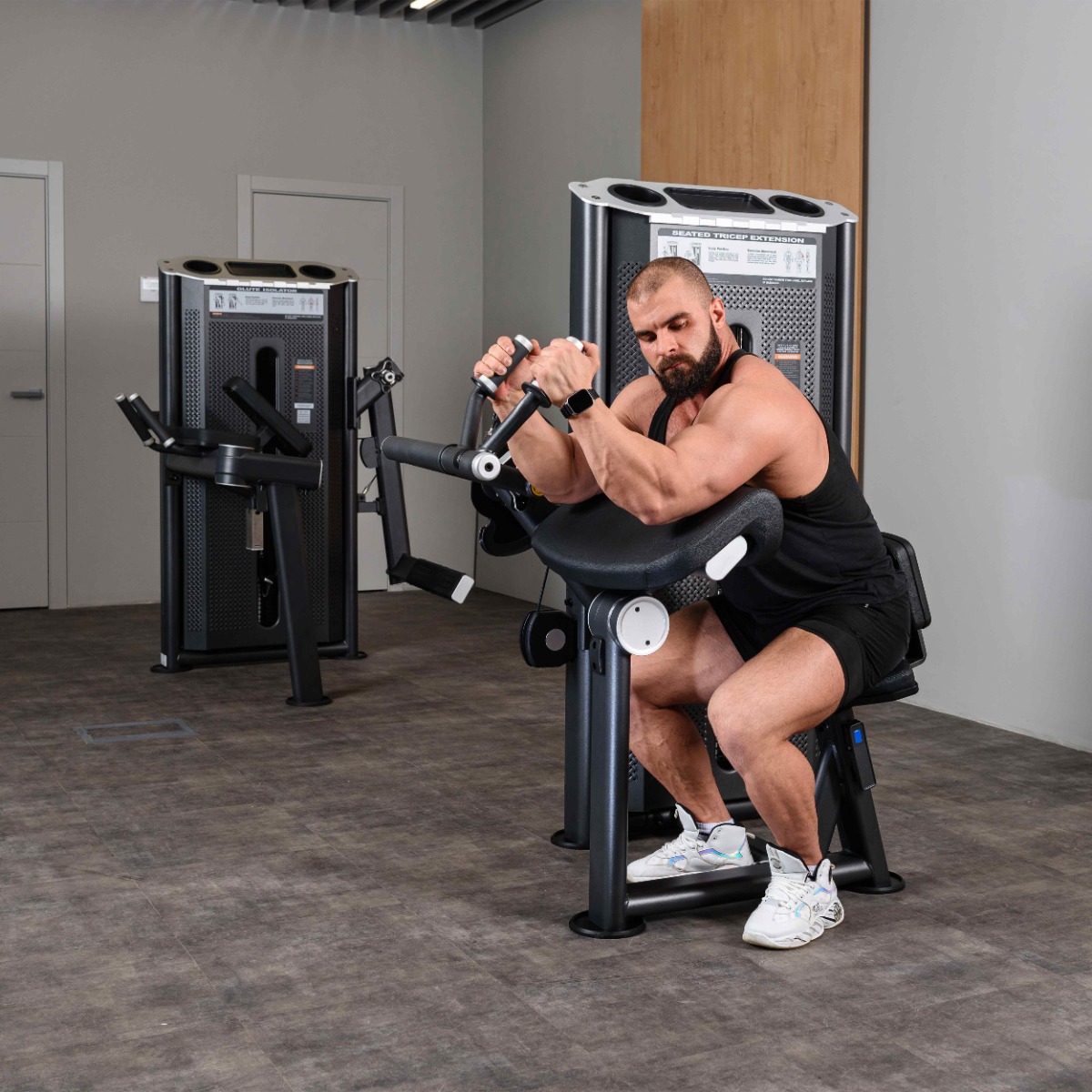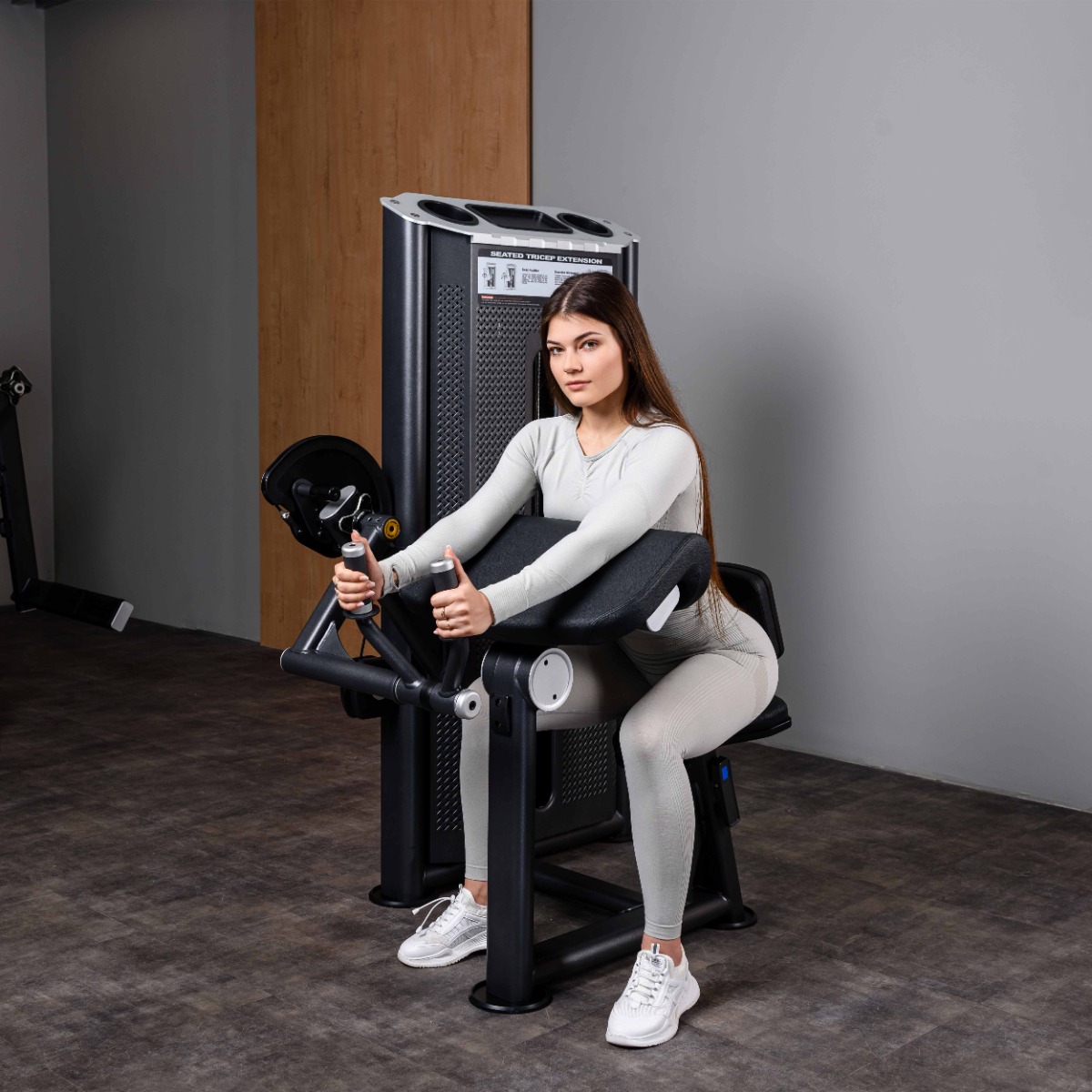 Профессиональный тренажер для коммерческого использования U2028 Трицепс-машина сидя. Наклонная парта предназначен для изолирующего упражнения на трицепс в исходном положении тела с наклоном вперед.