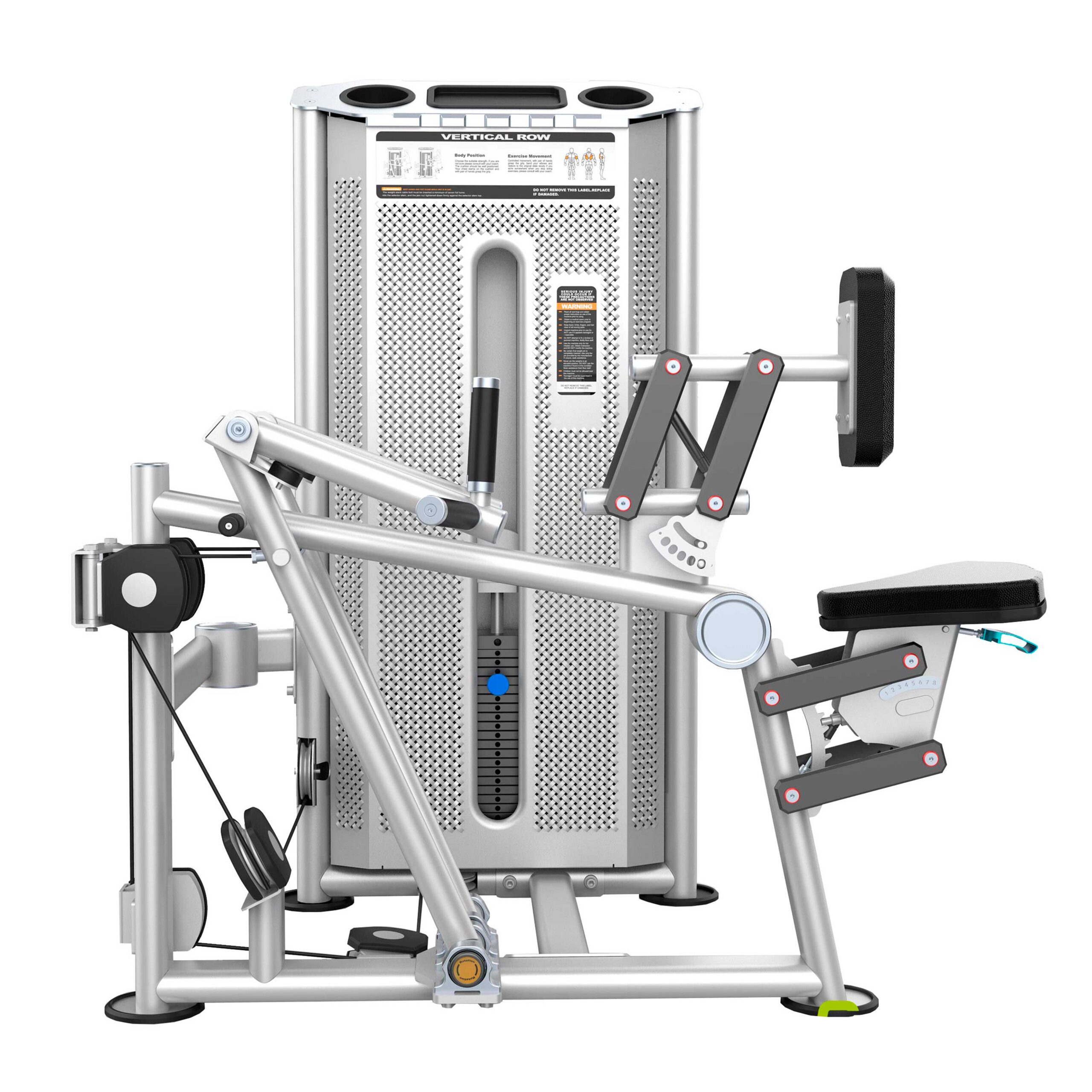 Металлическая перфорированная защита весового стека с лицевой стороны и сплошная защита с задней стороны выполнена из листового металла толщиной 2 мм. Ребра жесткости у основания, примыкающие к несущей раме через скрытое болтовое соединение сечением 6 мм в восьми точках, повышают эксплуатационные параметры тренажера.