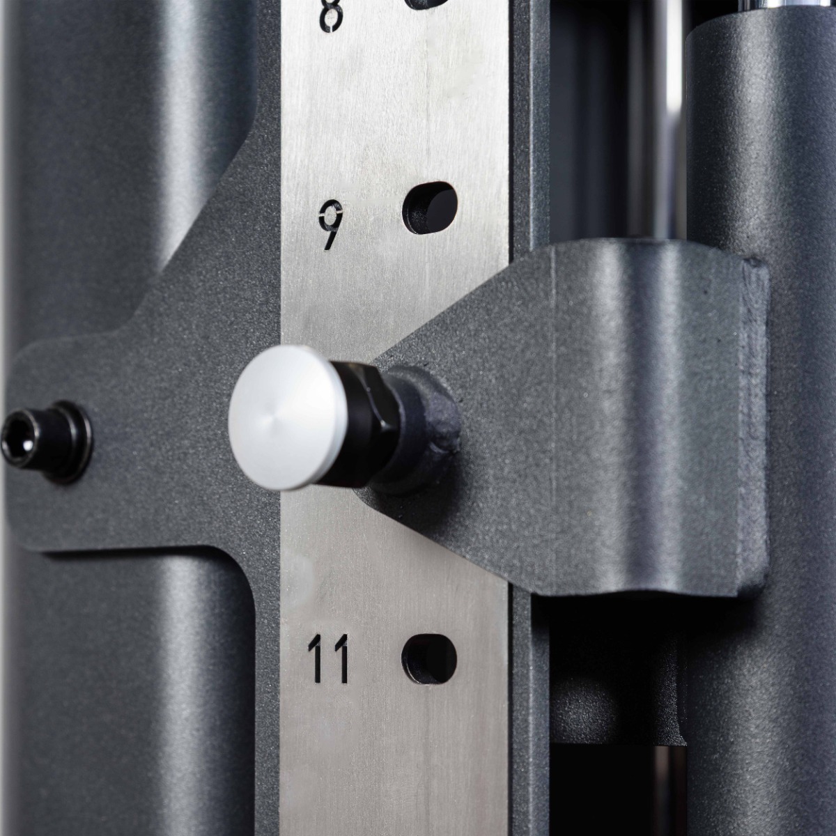 На металлические элементы нанесена лазерная маркировка уровней высоты и положения рукояток.
