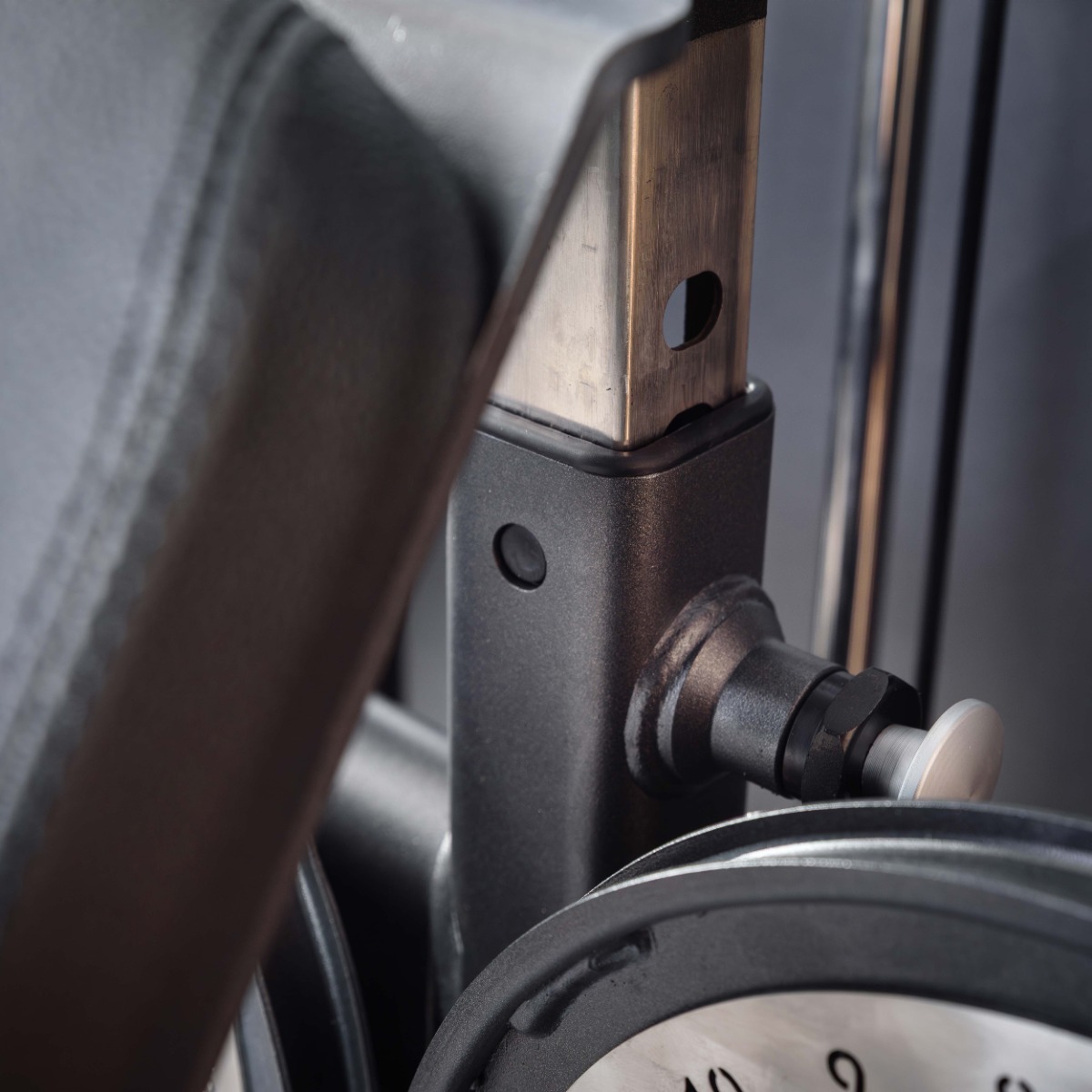 Четыре подпятника круглой формы выполнены из листового металла с резиновыми защитными кожухами, обеспечивают устойчивость тренажера и предохраняют напольное покрытие от повреждений.