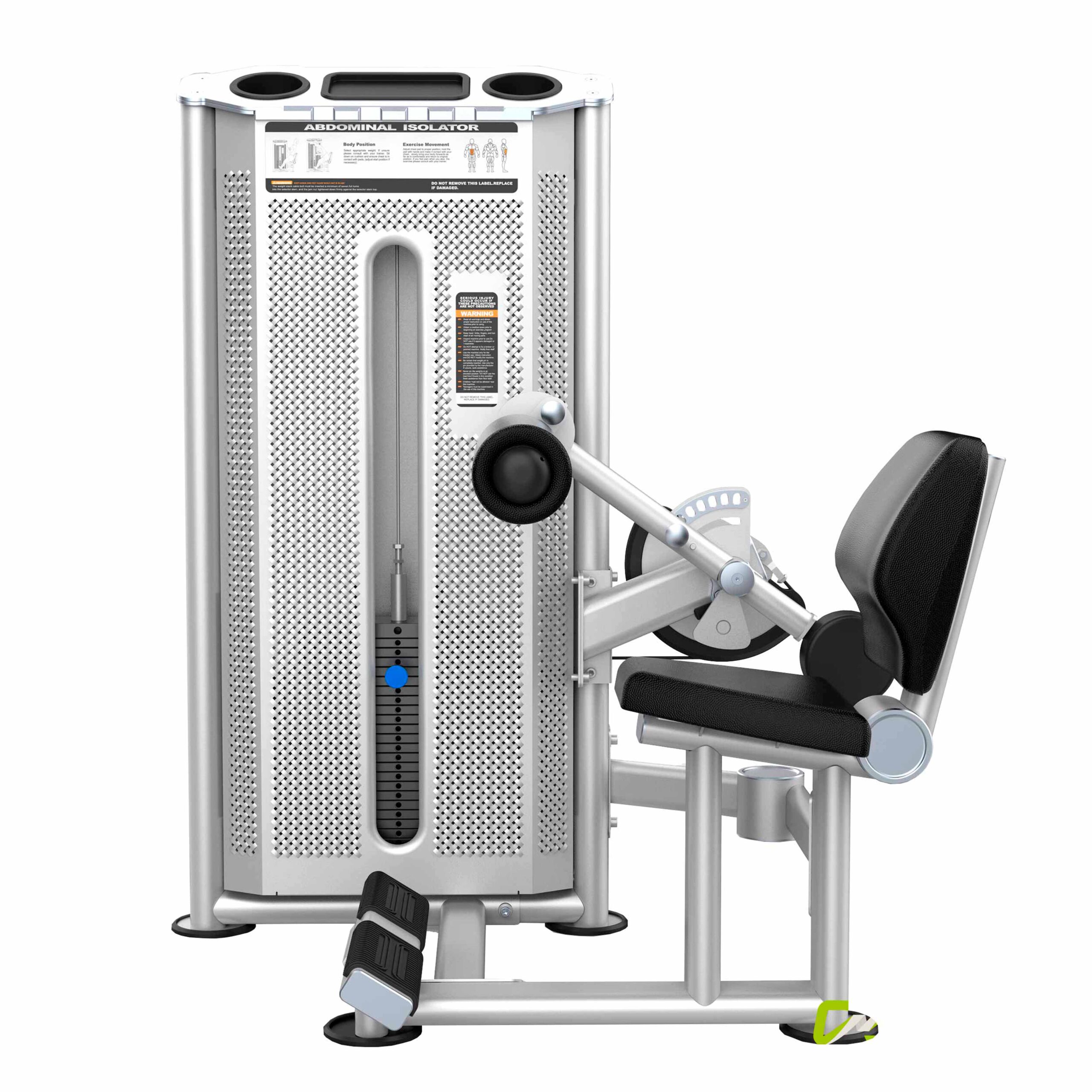 Металлическая перфорированная защита весового стека с лицевой стороны и сплошная защита с задней стороны выполнена из листового металла толщиной 2 мм. Ребра жесткости у основания, примыкающие к несущей раме через скрытое болтовое соединение сечением 6 мм в восьми точках, повышают эксплуатационные параметры тренажера.