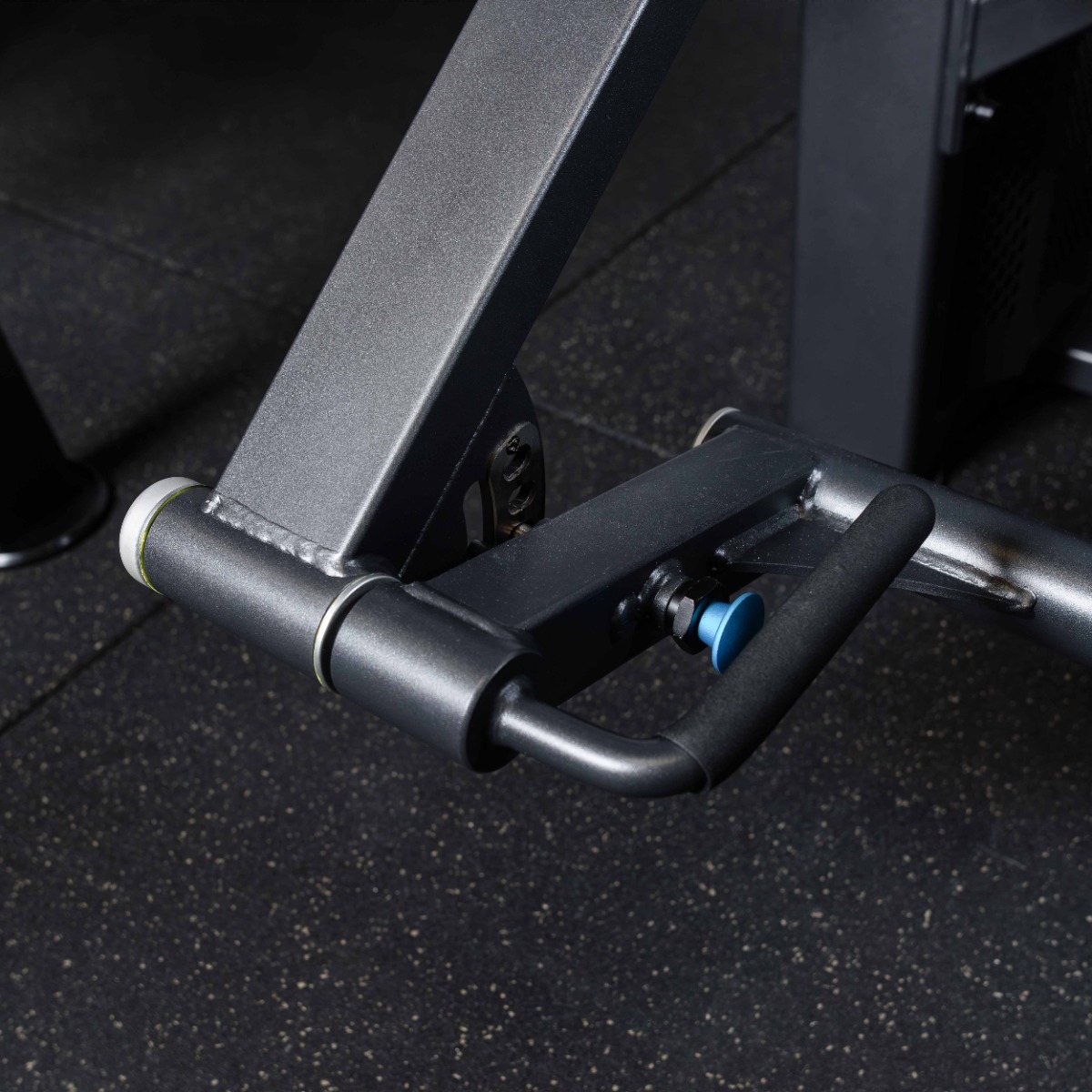 Нескользящие прочные рукоятки с резиновым покрытием с декоративными заглушками – наконечниками из полированного нержавеющего металла зафиксированные болтом, расположены под оптимальным углом для надежной фиксации тела атлета во время тренировки.