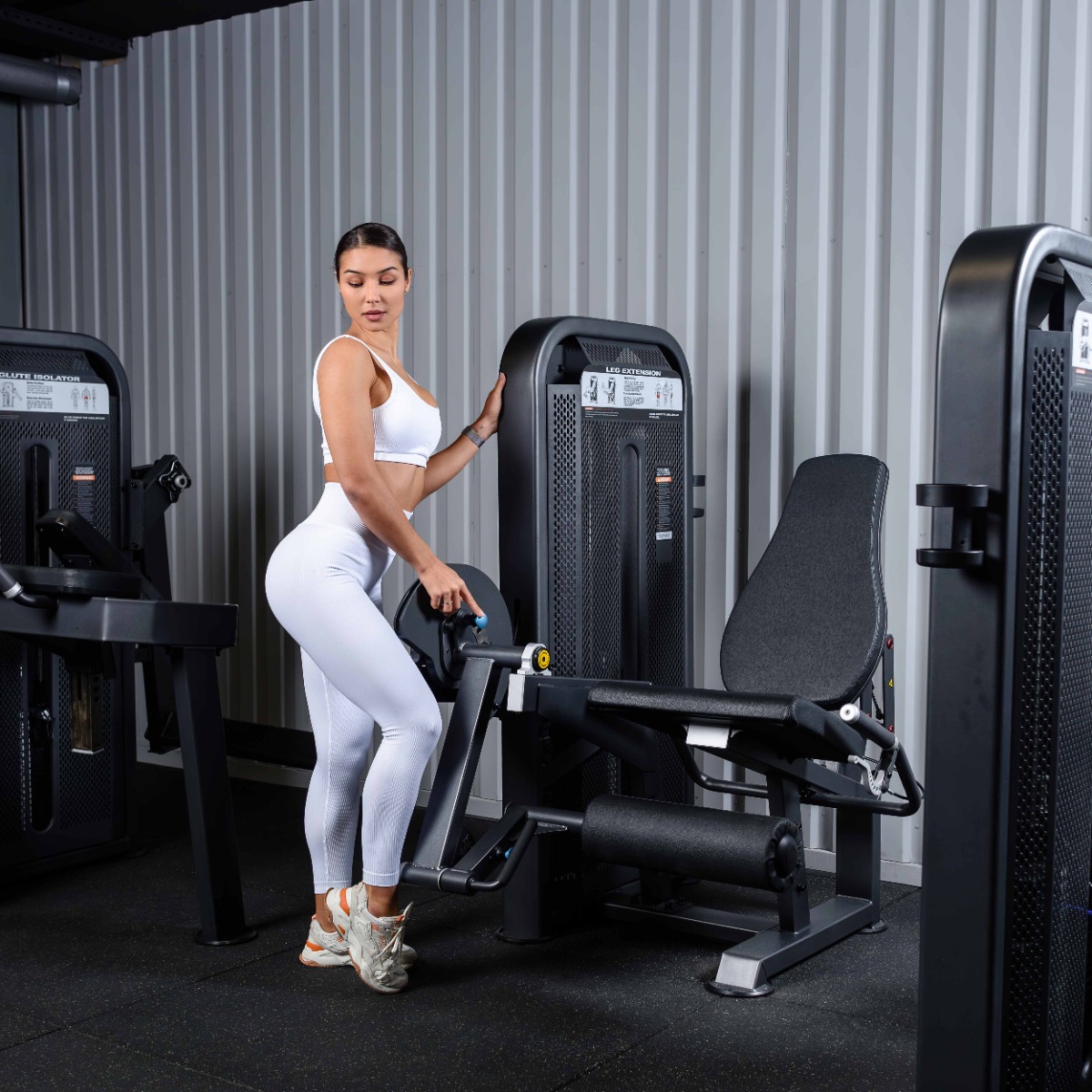 Занятие на данном тренажере направлено на проработку четырёхглавой мышцы бедра.