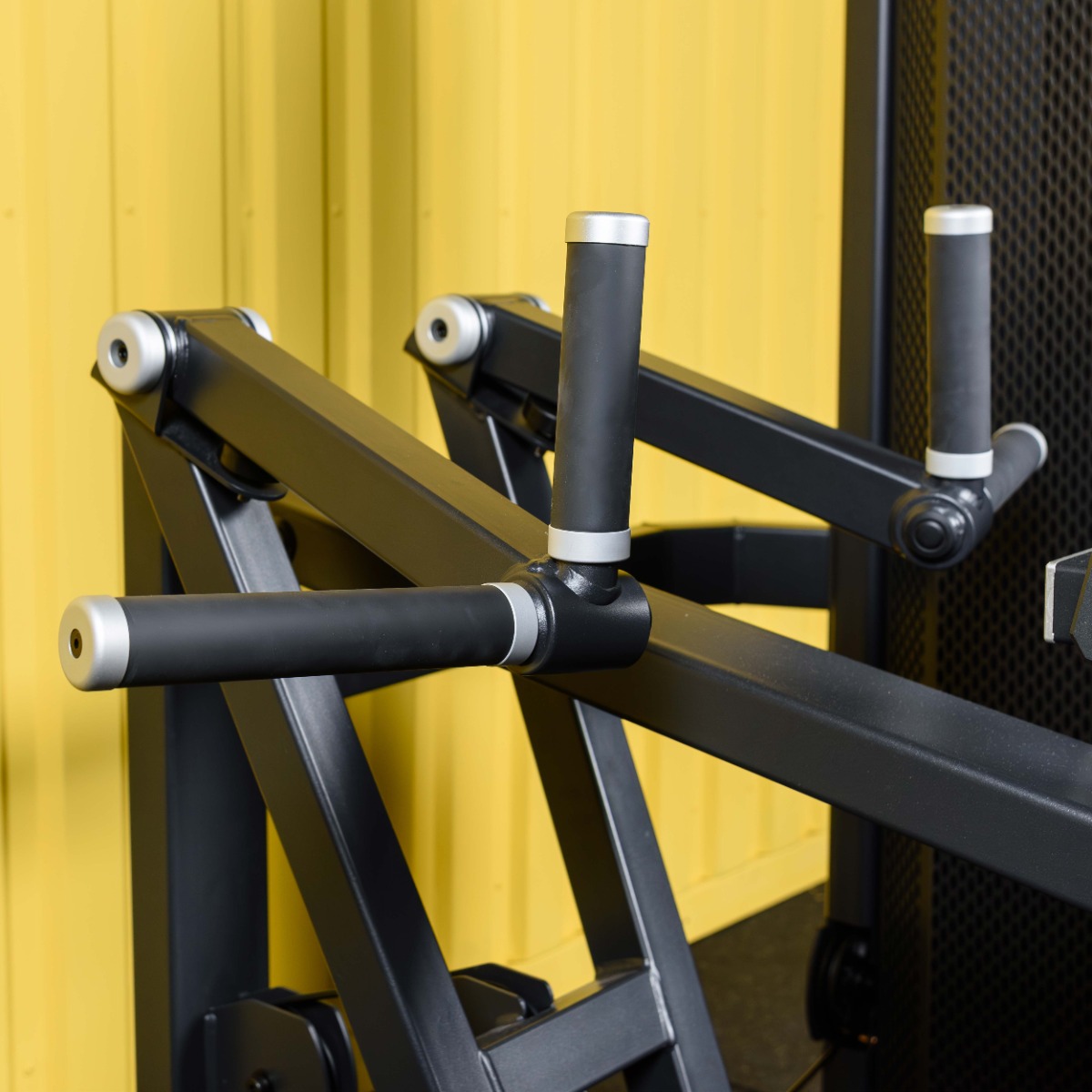 Многопозиционные рукоятки с резиновым покрытием и декоративными заглушками – наконечниками из полированного нержавеющего металла зафиксированные болтом, обеспечивают разнообразие упражнений.