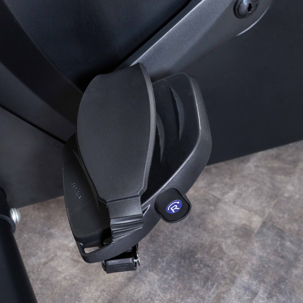 Педали велотренажера выполнены из высокопрочного пластика. Для надежной фиксации стоп на педалях закреплены ремни из эластичного пластика с регулировочными отверстиям.