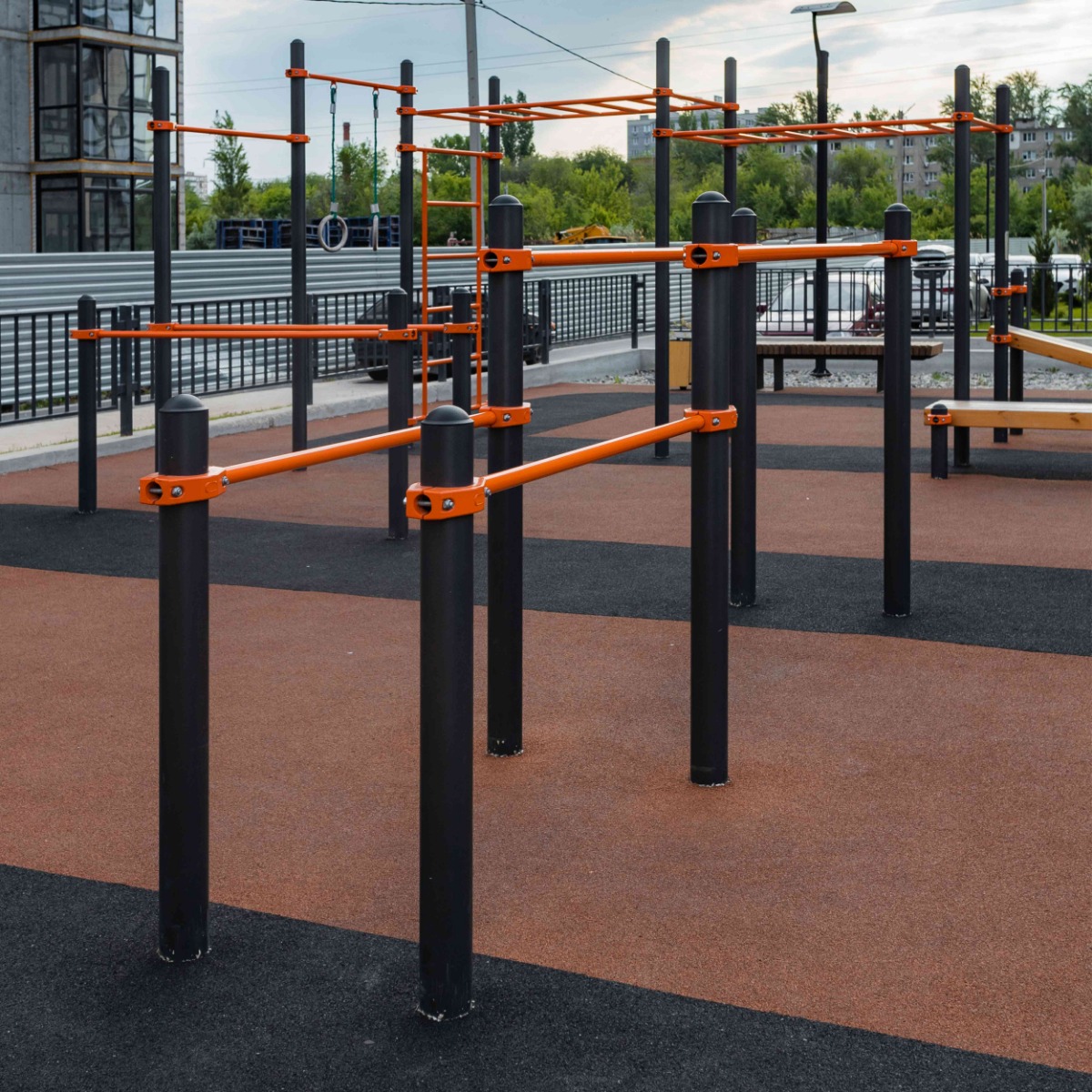 Уличные двойные разноуровневые брусья для отжиманий ZAVODSPORTA* предназначены для установки на уличных спортивных площадках с учетом интенсивной эксплуатации в разных климатических условиях.