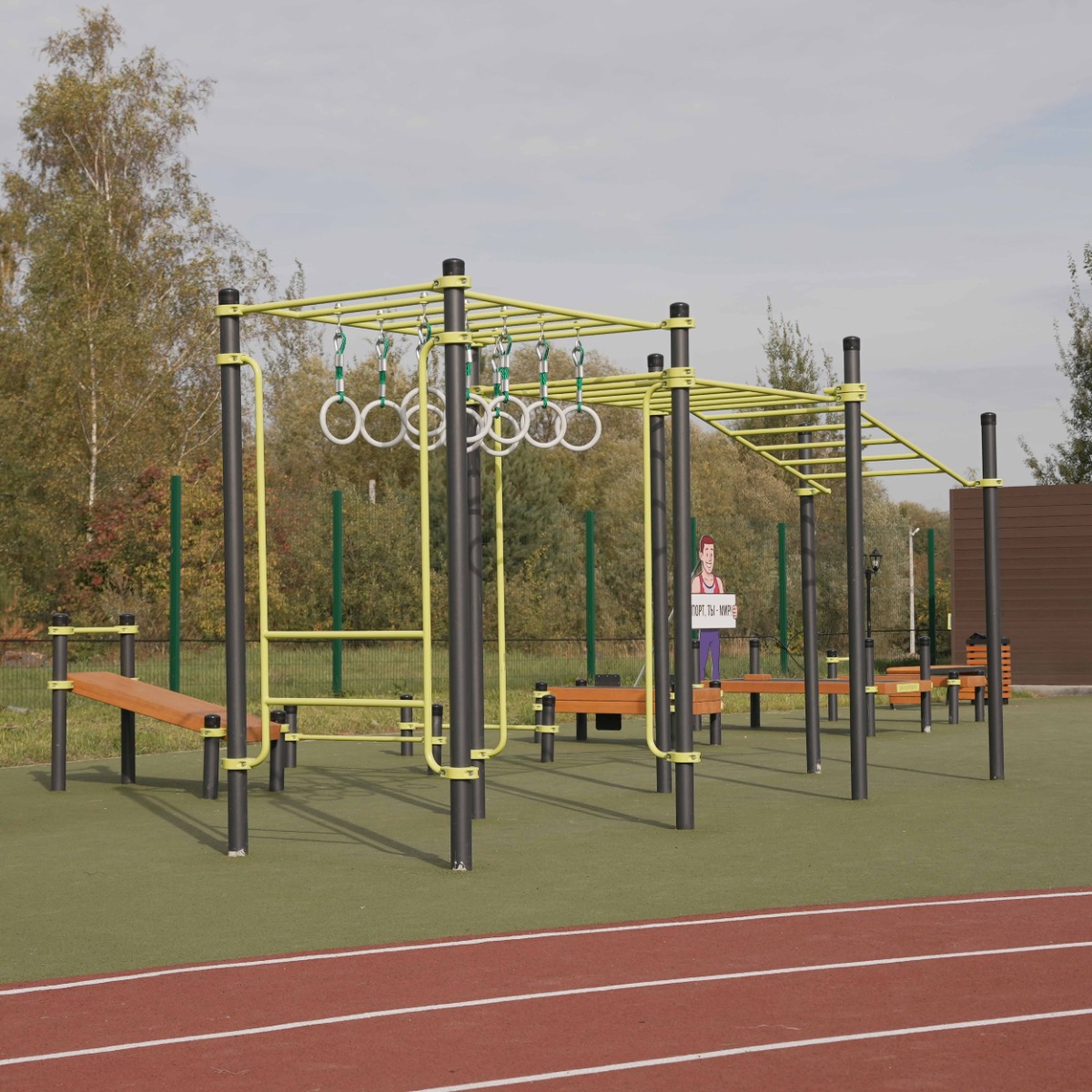 В состав комплекса входят четыре опорных столба: два высотой 1700 мм, два высотой 900 мм.
