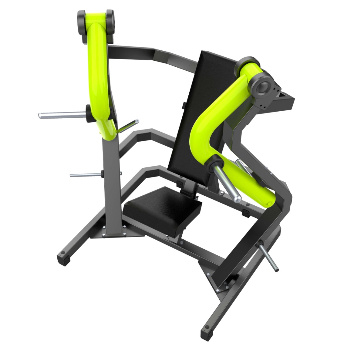 Подвижные рычаги выполнены из изогнутого круглого стального профиля без сварных соединений в рабочей зоне, что повышает прочность конструкции и придаёт тренажёру современный и выразительный внешний вид.