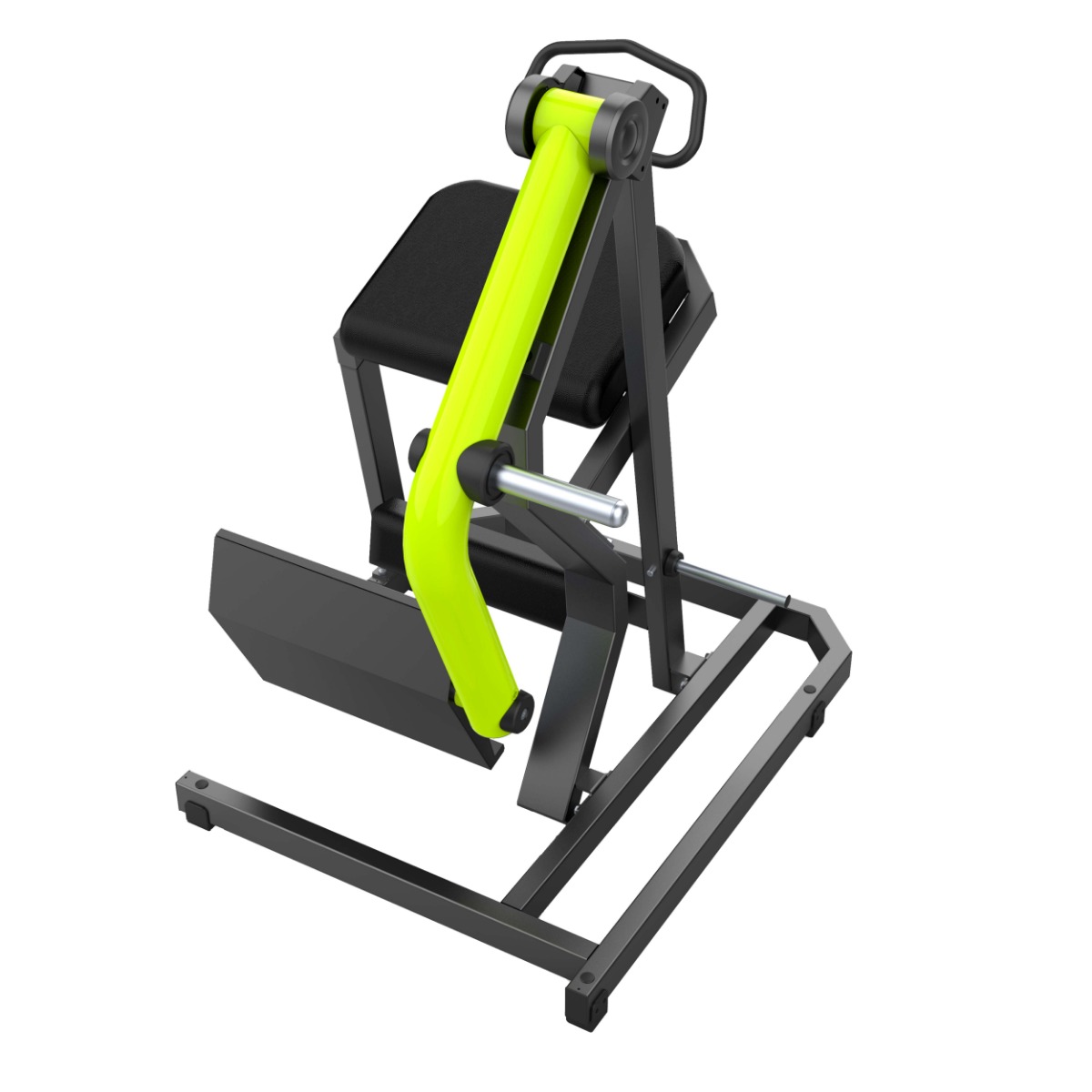 Подвижный рычаг выполнен из изогнутого круглого стального профиля без сварных соединений в рабочей зоне, что повышает прочность конструкции и придаёт тренажёру современный и выразительный внешний вид.